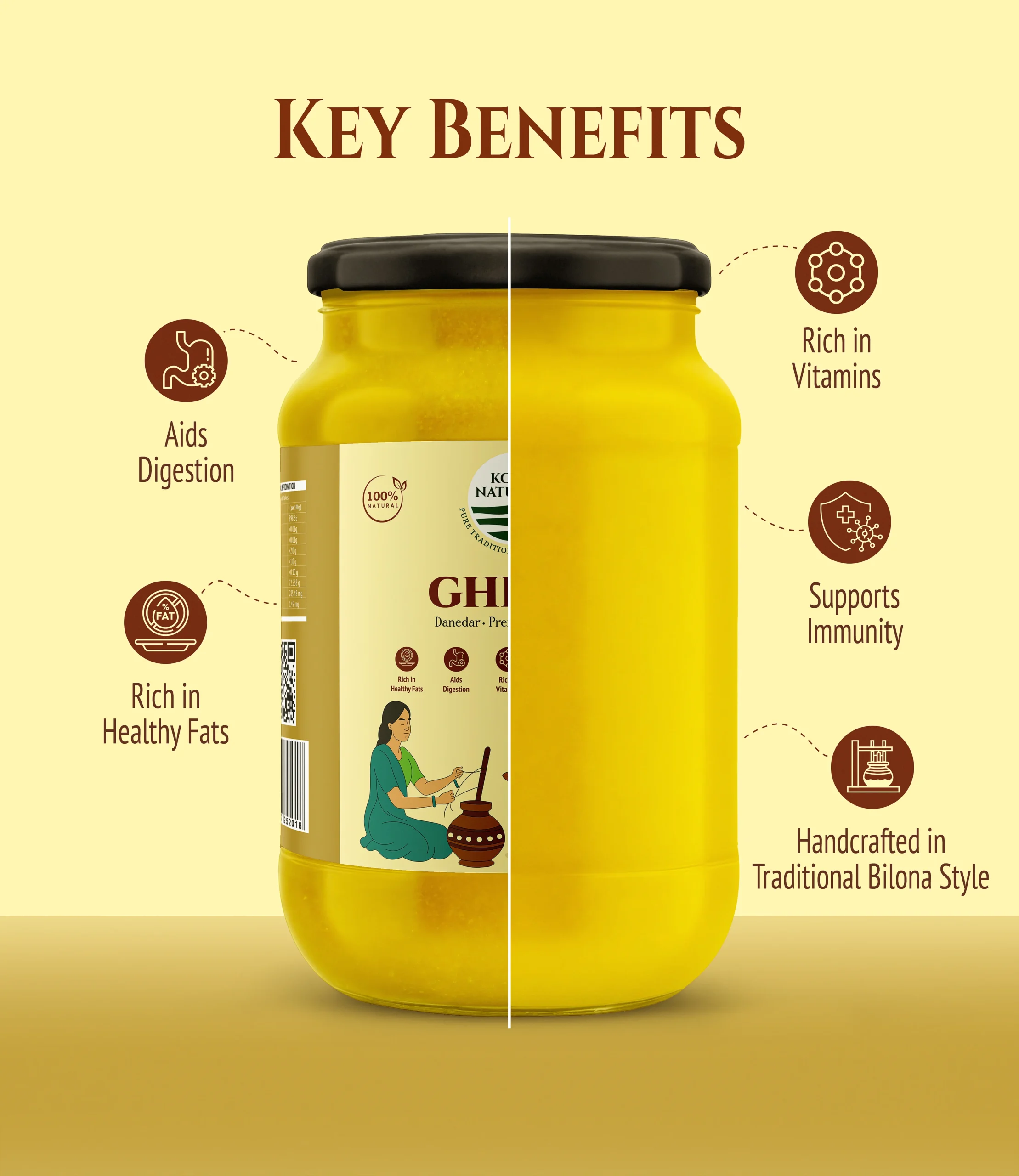 • Enhances the taste of roti, dal, rice, and sweets.