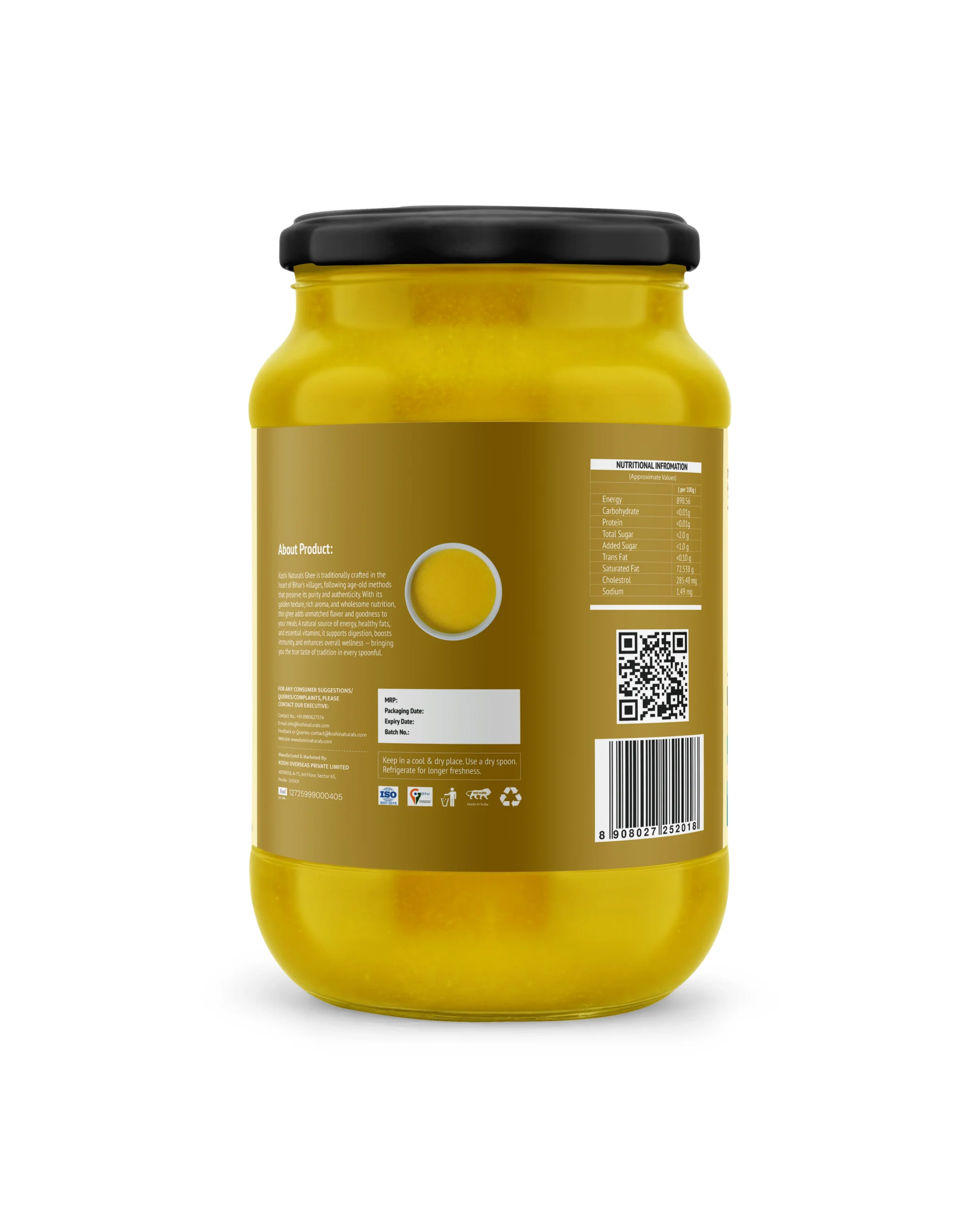 Made from pure milk using the traditional bilona method, Koshi Naturals White Desi Ghee is aromatic, wholesome, and packed with essential fatty acids. Known for its smooth texture and rich flavor, it is a must-have for everyday cooking and festive dishes.